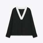 - Dökümlü kumaştan üretilmiştir. V yakalı ve manşetli uzun kollu.