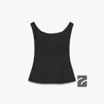 تاپ با یقه گرد و بندهای دوشی. آستر داخلی ترکیبی است. بسته شدن آن از طریق زیپ مخفی در درز کناری انجام میشود.