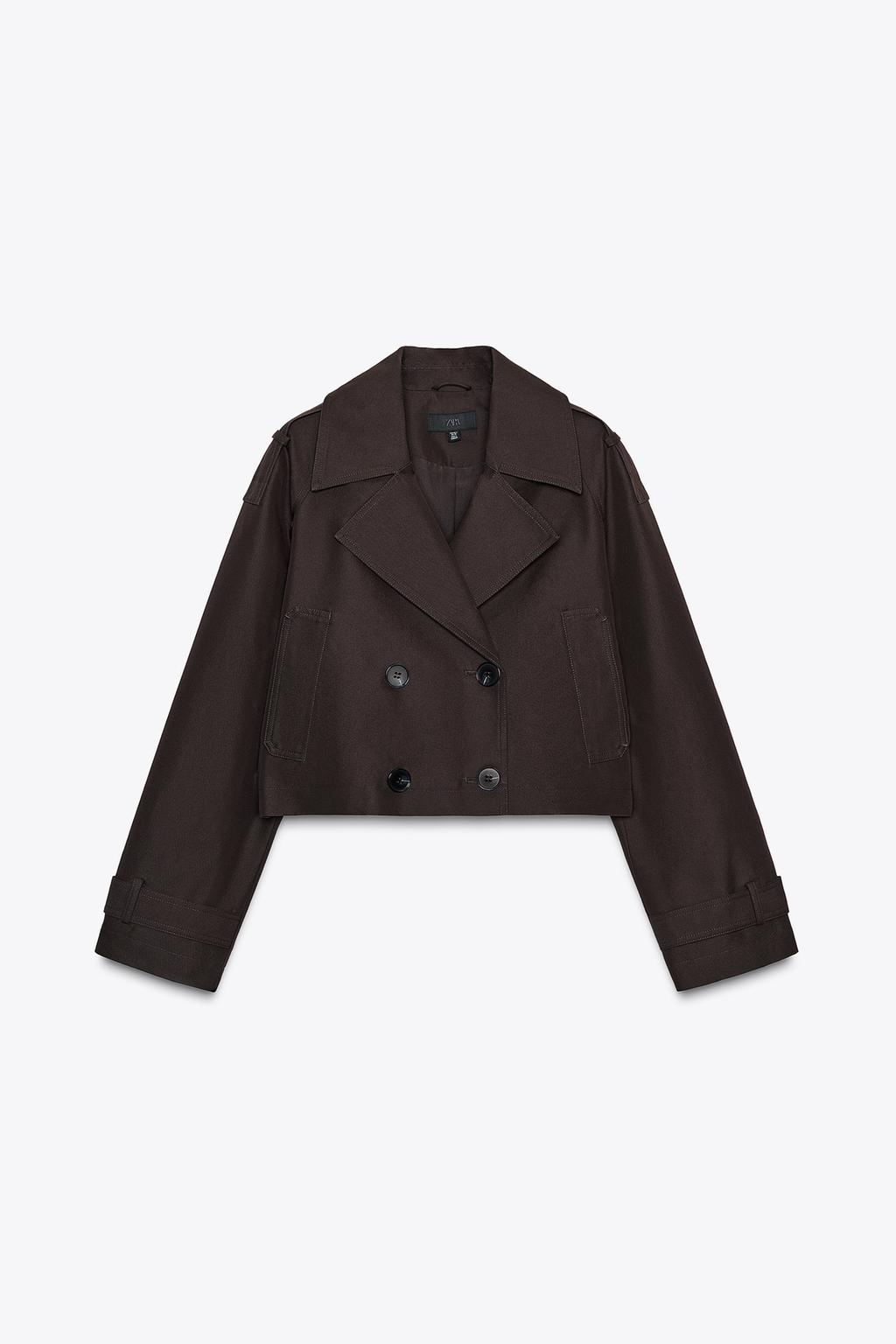 ترنچکت یقه کلپا با جیب جلو از برند زارا (زنانه) - M, قهوه ای (03046259)