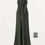 این لباس بلند با یقه گرد از پارچه ساتن تولید شده است. دارای جزئیات دو بند متقاطع در قسمت پشت و زیپ مخفی در دوخت کناری میباشد.