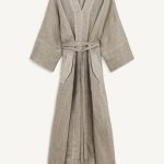 این لباس کیمونو از ۱۰۰٪ الیاف کتان تهیه شده است. دارای یقه V و آستینهای بلند است. در دو طرف دارای جیبهای با درپوش میباشد. کمربند قابل تنظیم از همان پارچه و با جزئیات دوخت رنگی مشابه.