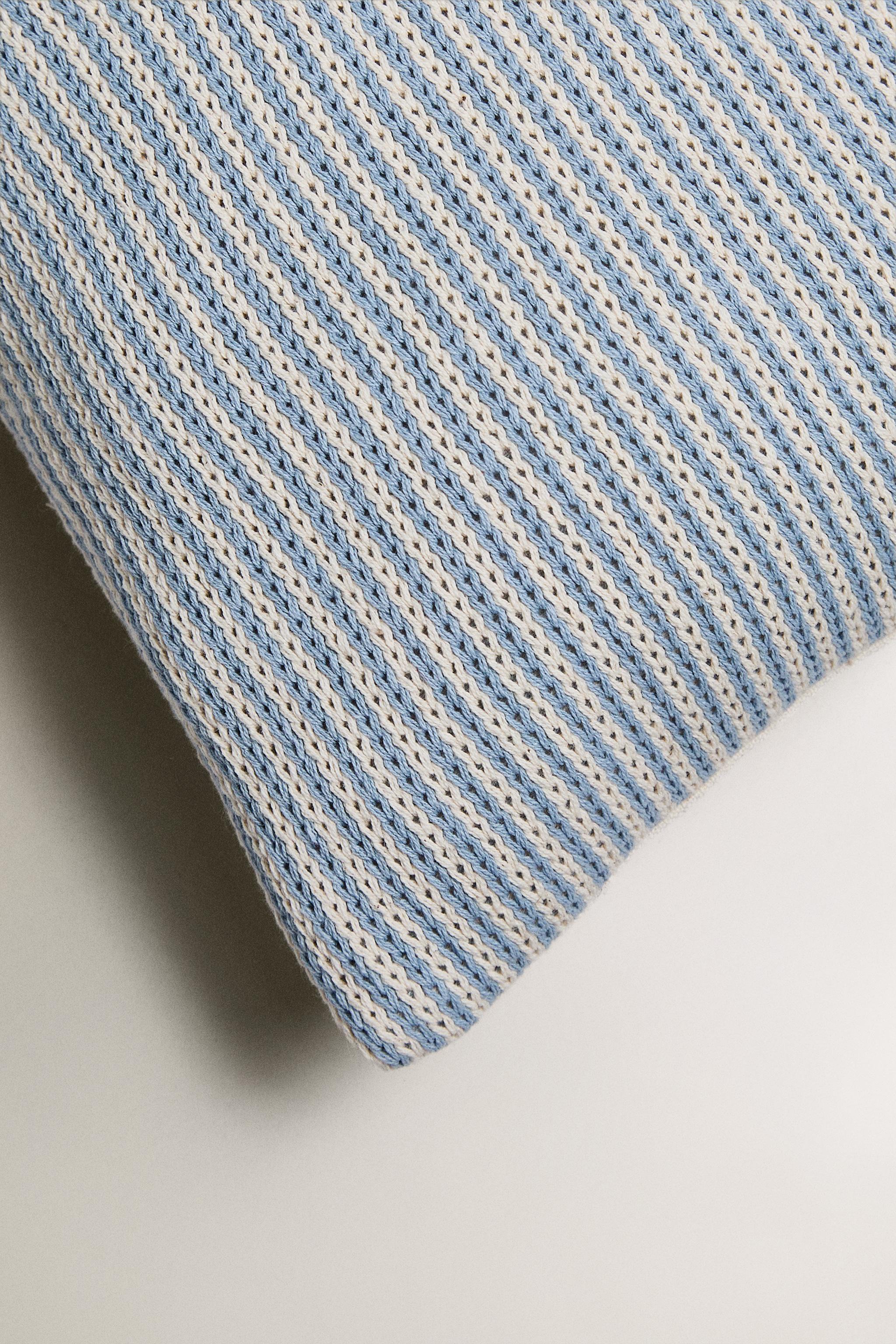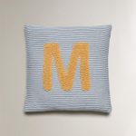 - Ortası “M” harfi işlemeli, çizgili tasarımlı pamuklu çocuk minderi. İç dolgusu dahildir.