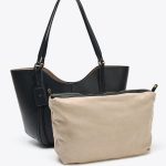 - Maksi shopper omuz çantası. Gövde üzerinde dikiş detayı. Metal fermuarlı iç cüzdan. Çift saplı. Mıknatıslı kapama.