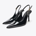 کفش پاشنهدار با پشت باز. دارای بند پشتی با قفل فلزی. نوک تیز.