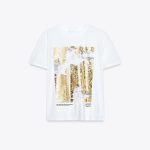 - Pamuk ipliğinden üretilmiş t-shirt. Bisiklet yaka ve kısa kollu. Ön kısımda metalik baskı detayı.