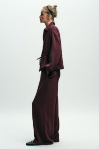- V yaka, kolsuz, boncuklu elbise. Lastikli bel ve ince kemerli. Metalik iplikli desenli kumaş. İç astarı mevcut.