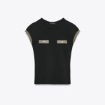 Pamuk karışımlı iplikten üretilmiş t-shirt. Bisiklet yaka ve kısa kollu. Ön kısımda cepler. Metalik iplik uygulaması detaylı.