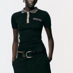 - Polo yaka, kısa kollu t-shirt. Göğüste cep. Metalik iplik uygulama detayı. Önden düğmeli kapama.
