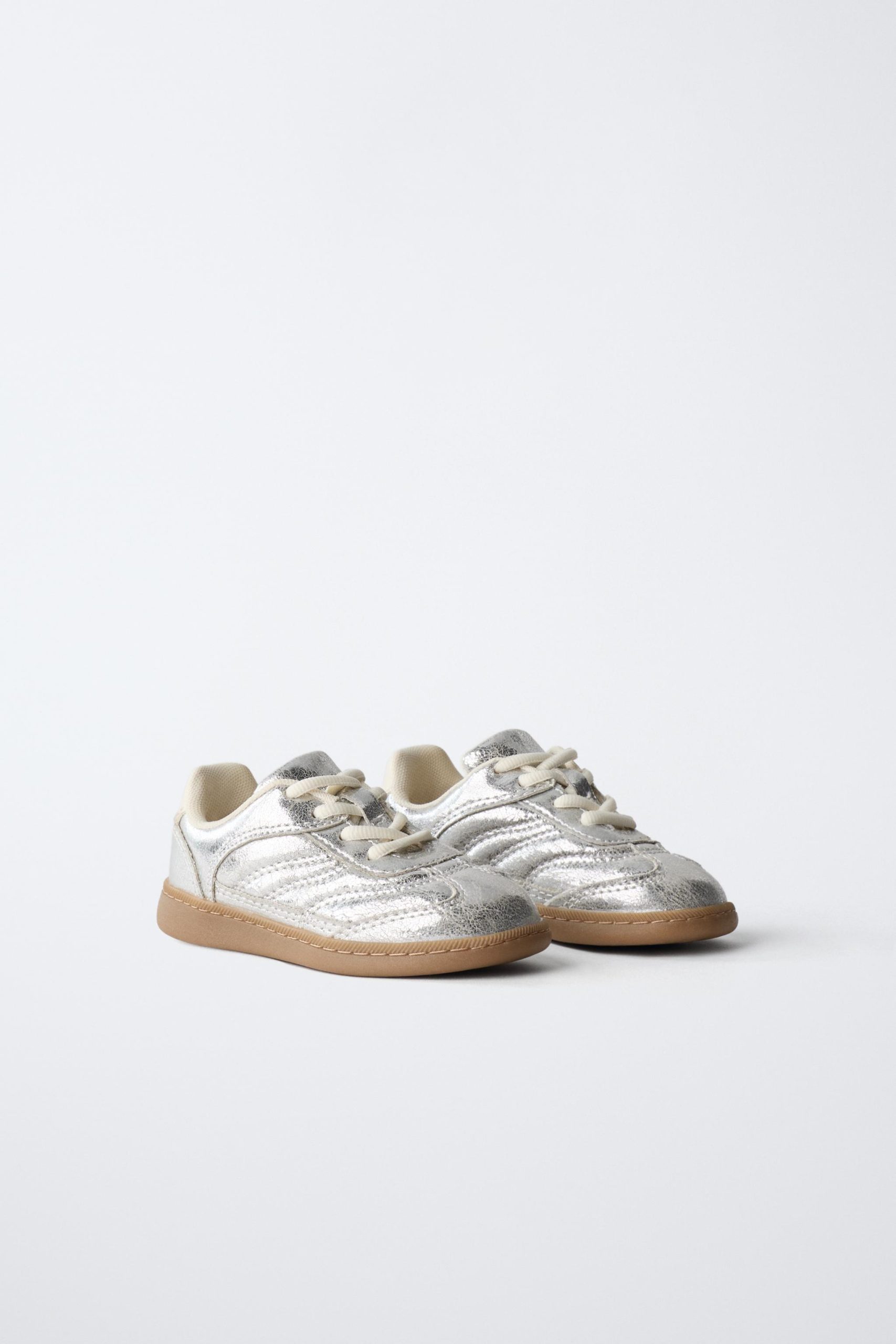 - Metalik spor ayakkabı. Ayarlanabilir bağcıklı. Esnek iç tabanlı. Kontrast renkli kauçuk tabanlı.