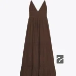 این میدی لباس از ۱۰۰٪ پنبه تولید شده است. دارای یقه V و بندهای نازک قابل تنظیم است. پشت لباس با بندهای قابل تنظیم باز است. جیبهای کناری به صورت مخفی در دوخت قرار دارند. آستر داخلی با رنگ هماهنگ طراحی شده است.