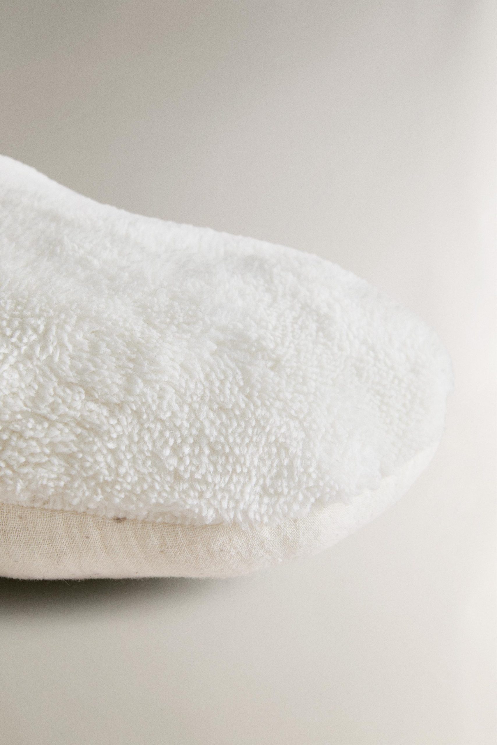 Bir yüzü ay tasarımlı, diğer yüzü suni kürklü, bulut şeklinde, pamuklu muslin kırlent.
