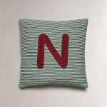 کوسن کودک با طراحی راهراه از جنس پنبه و با حرف “N” در وسط آن، دارای پرکننده است.