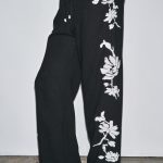 شلوار تولید شده از ترکیب 21 درصد کتان و ویسکوز. دارای کمر متوسط با بند قابل تنظیم و کشی. جزئیات گلدوزی شده با طرح گل و آویزهای مرواریدی در رنگ متضاد. پاچه‌های صاف.