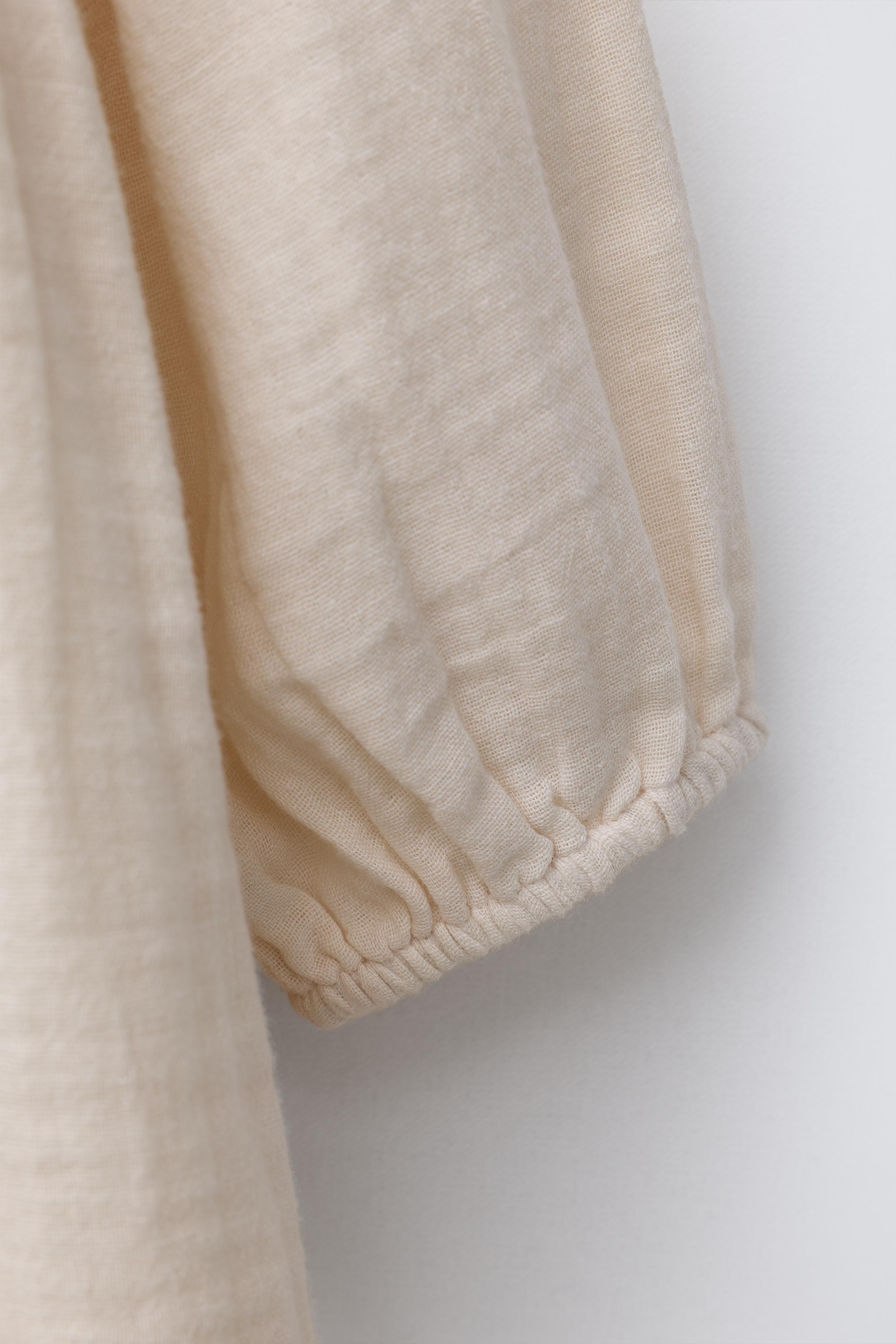 پیراهن بلند آستیندار با یقه و کشباف. بسته شدن از جلو با دکمه. دارای جزئیات گلدوزی گل و تزیینات دانتل در قسمت جلو. آستر داخلی با رنگی هماهنگ طراحی شده است.