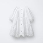 - Bisiklet yaka, lastikli kısa kollu elbise. Önden düğme kapamalı. Etek ucunda nakışlı çiçek detayı.
