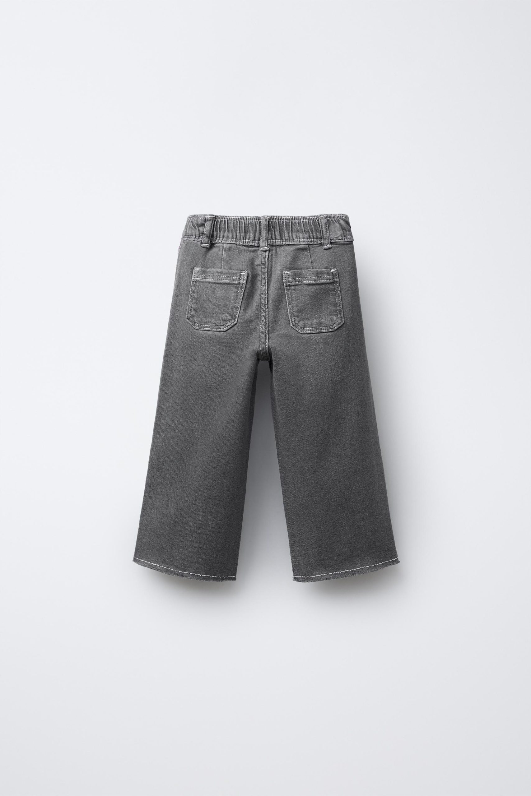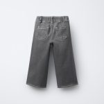 جین مدل دریایی با کمر قابل تنظیم و دکمهدار در جلو. دارای جیب یقهای در پشت و پاچههای بدون دوخت با گلدوزی گل در کنارهها.