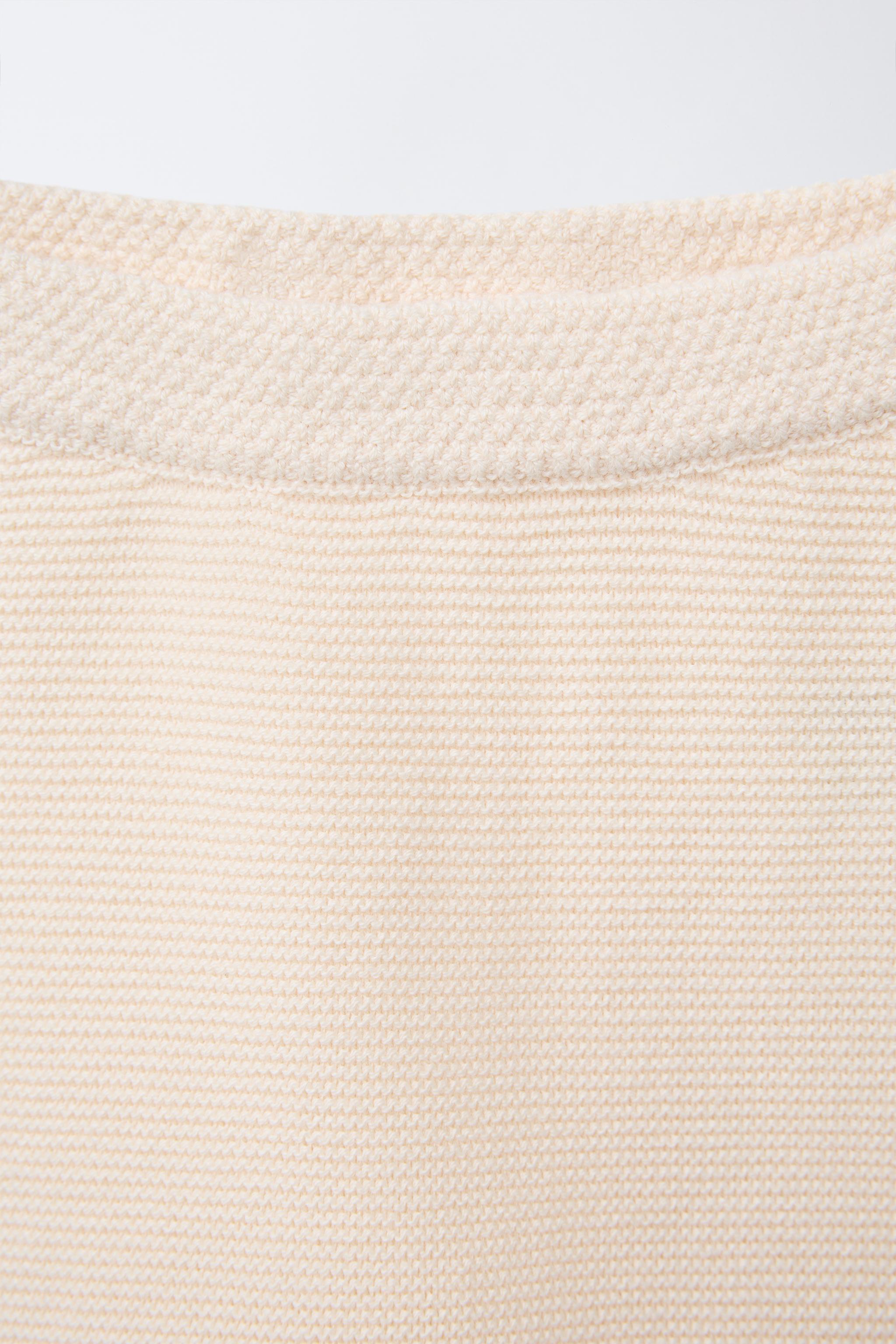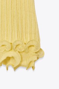 • Elastik belli, örgü pantolon. Etek ucunda nakışlı çiçek detayı.