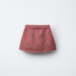 دامن با کمر الاستیک، از جنس تریکو. جلوهای با جزئیات گلدوزی شده و طرح گل.