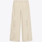 شلوار تولید شده از %100 الیاف پنبه. دارای کمر کشی و کمر معمولی. دارای جیب‌های جانبی. با جزئیات گلدوزی سوراخ‌دار در رنگ هماهنگ.