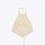 تیشرت یقه هالتر با بند، از %100 الیاف پنبه تولید شده است. این تیشرت دارای آستری داخلی و جزئیات گلدوزی به رنگ هماهنگ است و طراحی آن به صورت باز در قسمت پشت میباشد.