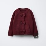 Bisiklet yaka, uzun kollu, örgü bomber ceket. Fiyonk aplike detaylı gizli çıtçıt düğmeli. Biyeli detaylı ön cepli.