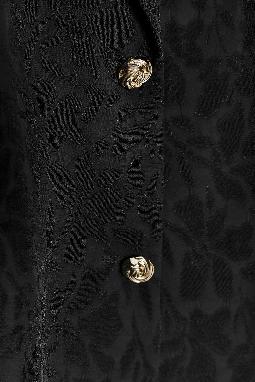 Dökümlü, katlı yakalı, vatkalı, uzun kollu blazer. Kapaklı ön cepli. Arkası yırtmaçlı. Önü kabartmalı iki düğme iliklemeli.
