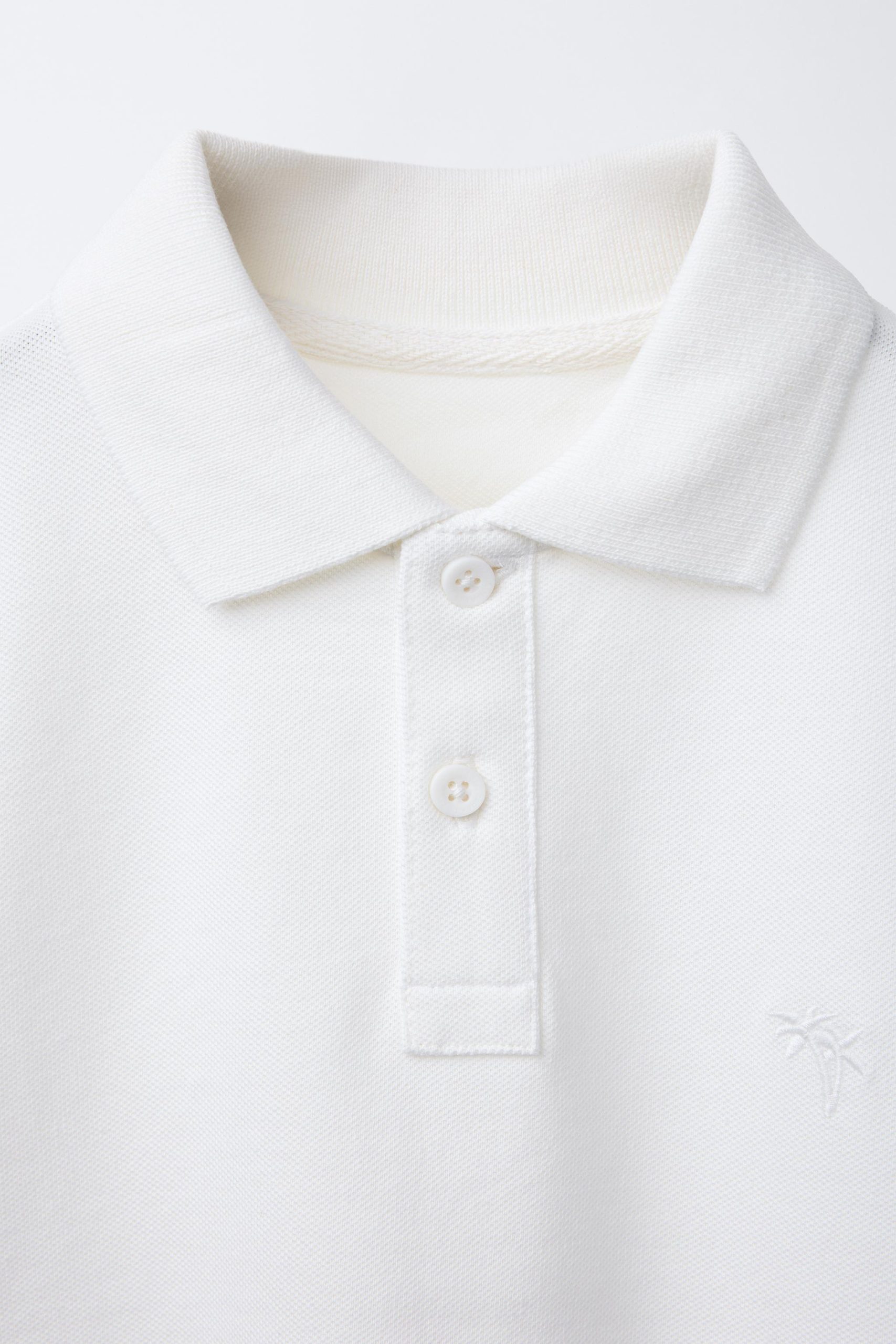 پولوشرت کوتاه‌دامن با جزئیات گلدوزی در ناحیه سینه به رنگ‌های مشابه. تهیه شده از ۱۰۰% پارچه پنبه‌ای.