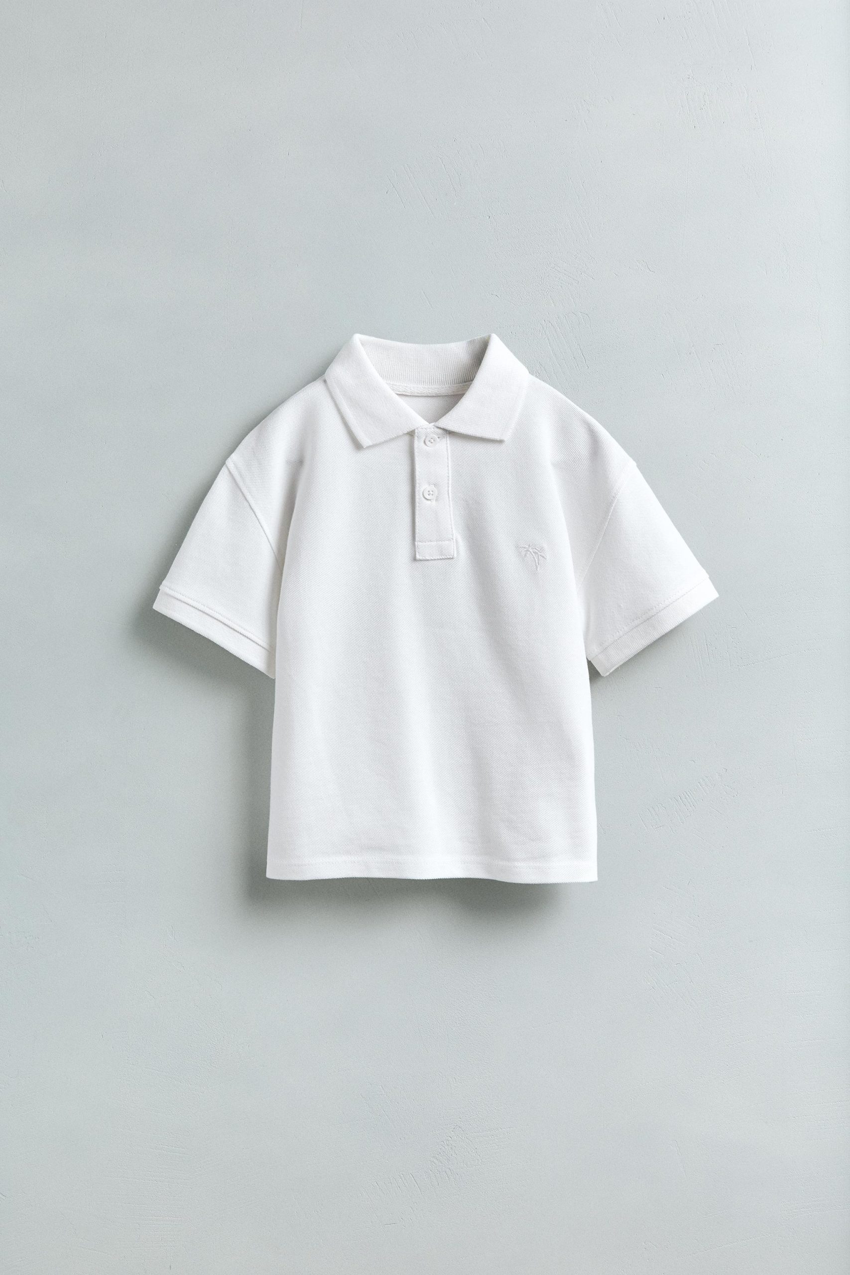 Fitilli kısa kollu polo. Göğüs kısmında ton sür ton nakış detaylı. %100 pamuklu kumaş.