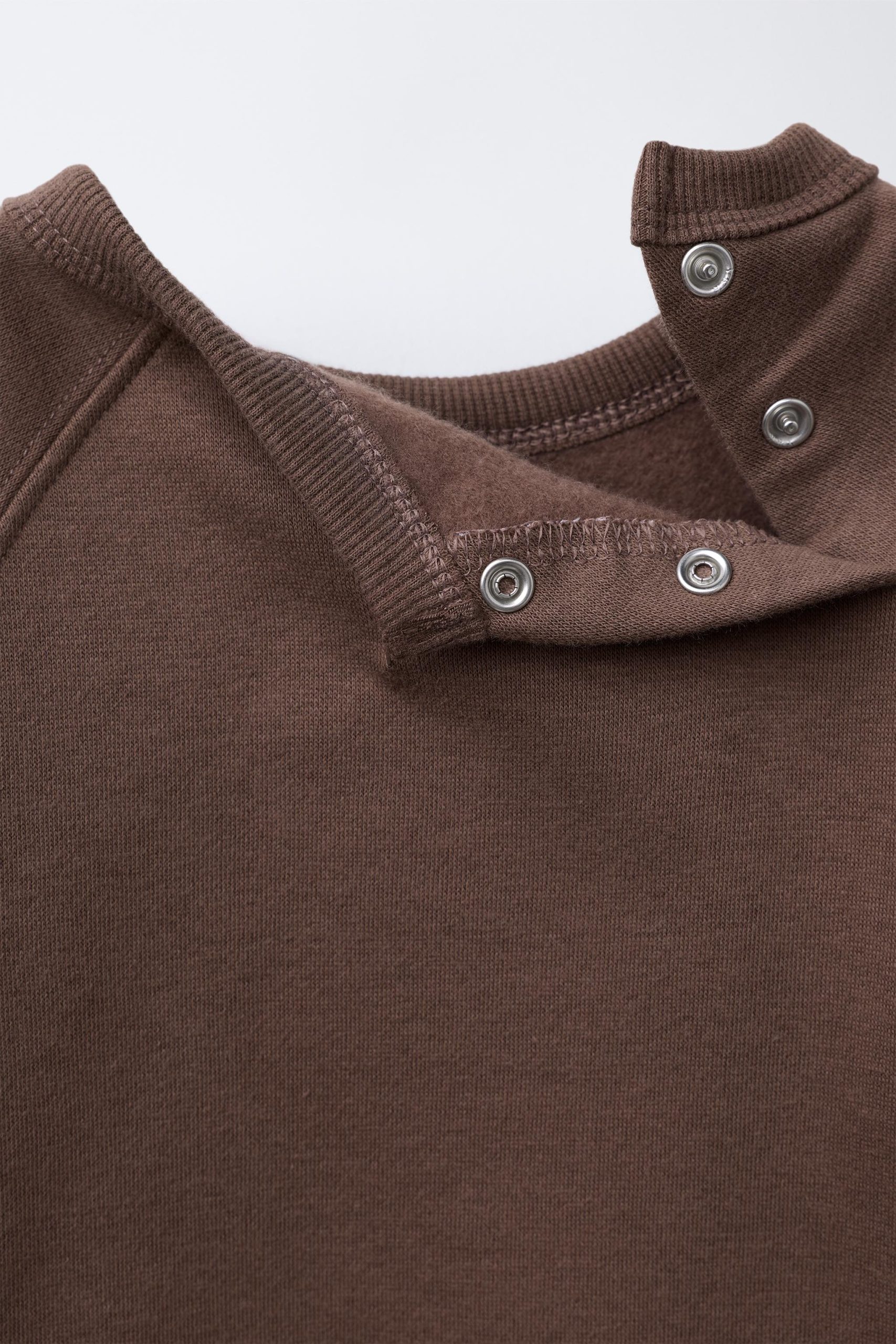 تولید شده از 68% پنبه، این سرهمی دارای یقه بیسیکلت، آستین‌های بلند با مچ، دکمه‌های فشاری در شانه و مچ پا و طراحی جلو با گلدوزی خرس است.