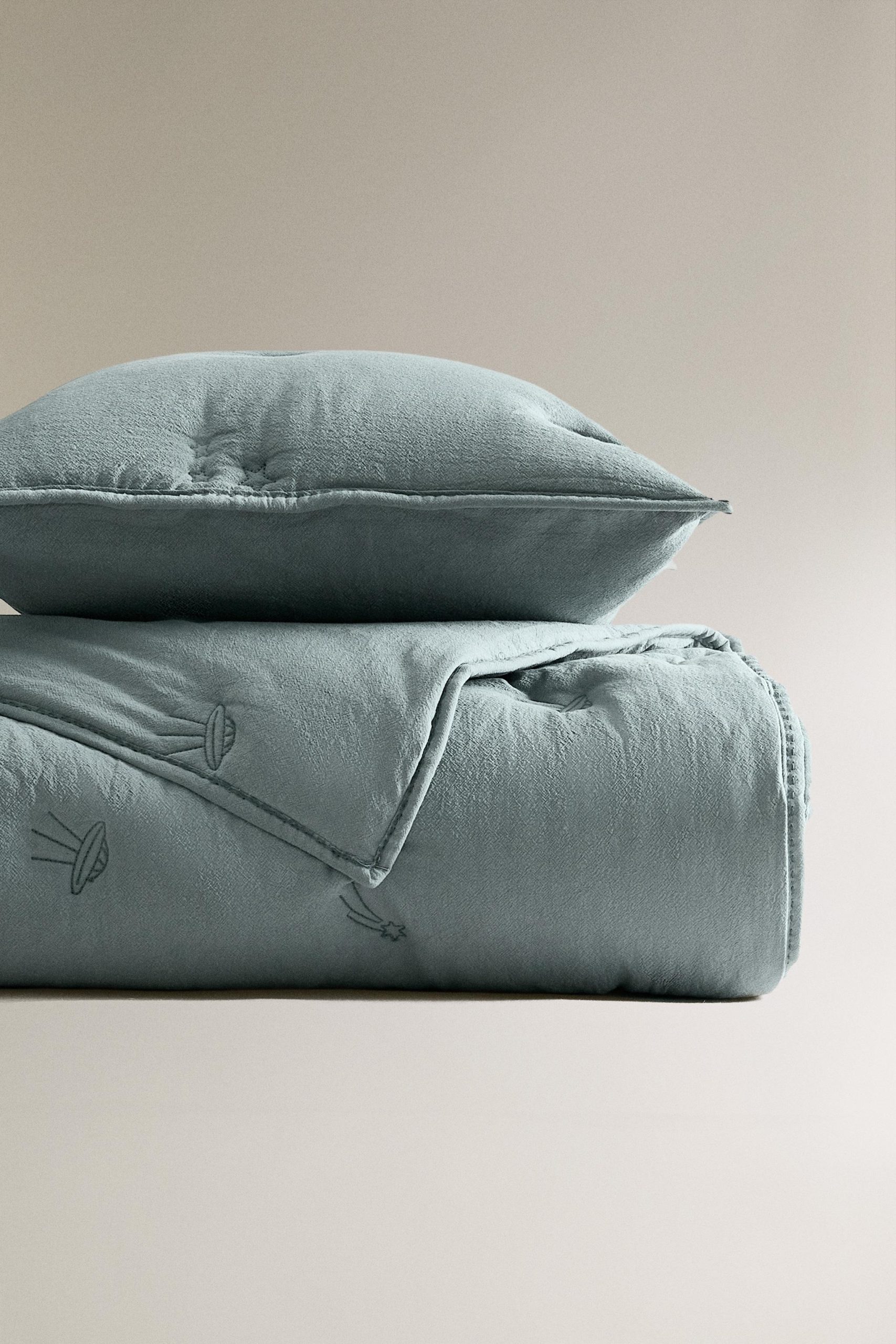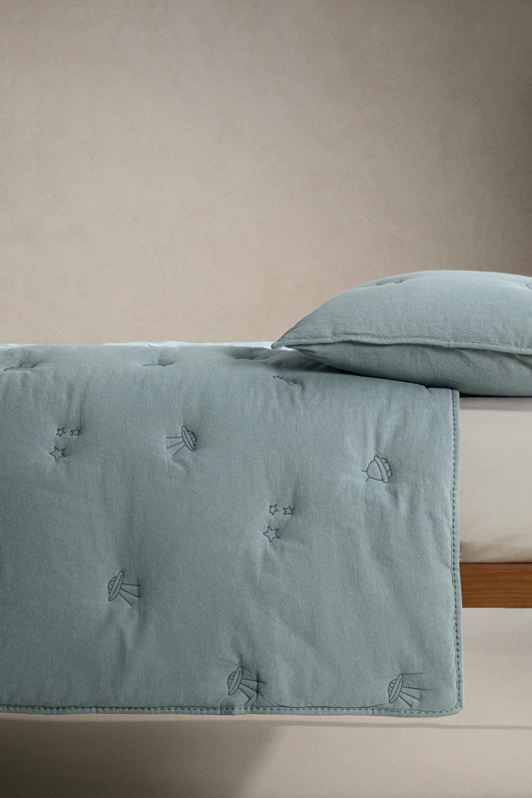 - Çocuklar için uzay motifli, düz renkli, pamuklu yorgan.