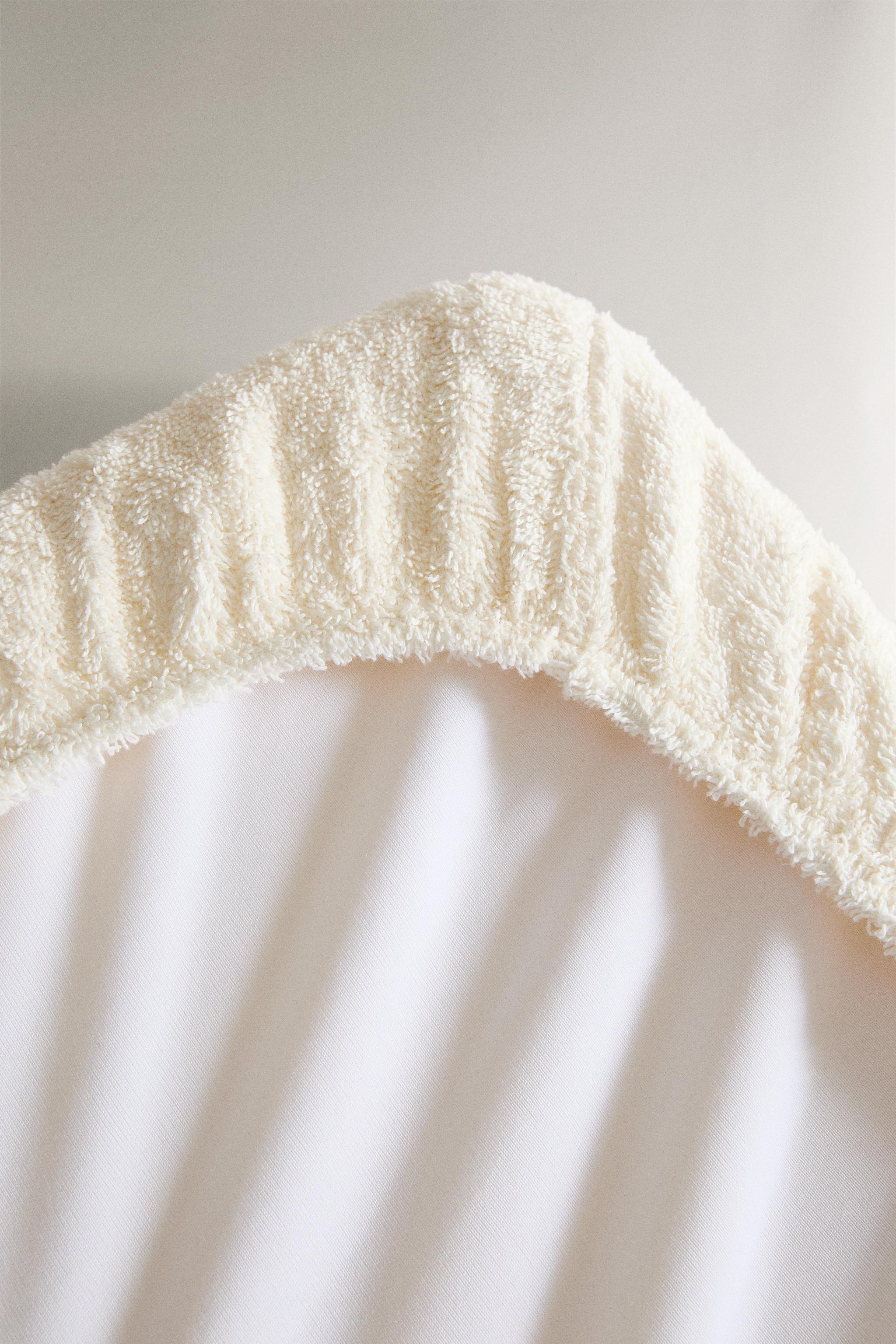 - Dış kısmı çizgili tasarımlı ve havlu efektli kumaşlı, pamuklu havlu kumaştan bebek alt değiştirme bezi şilte kılıfı.