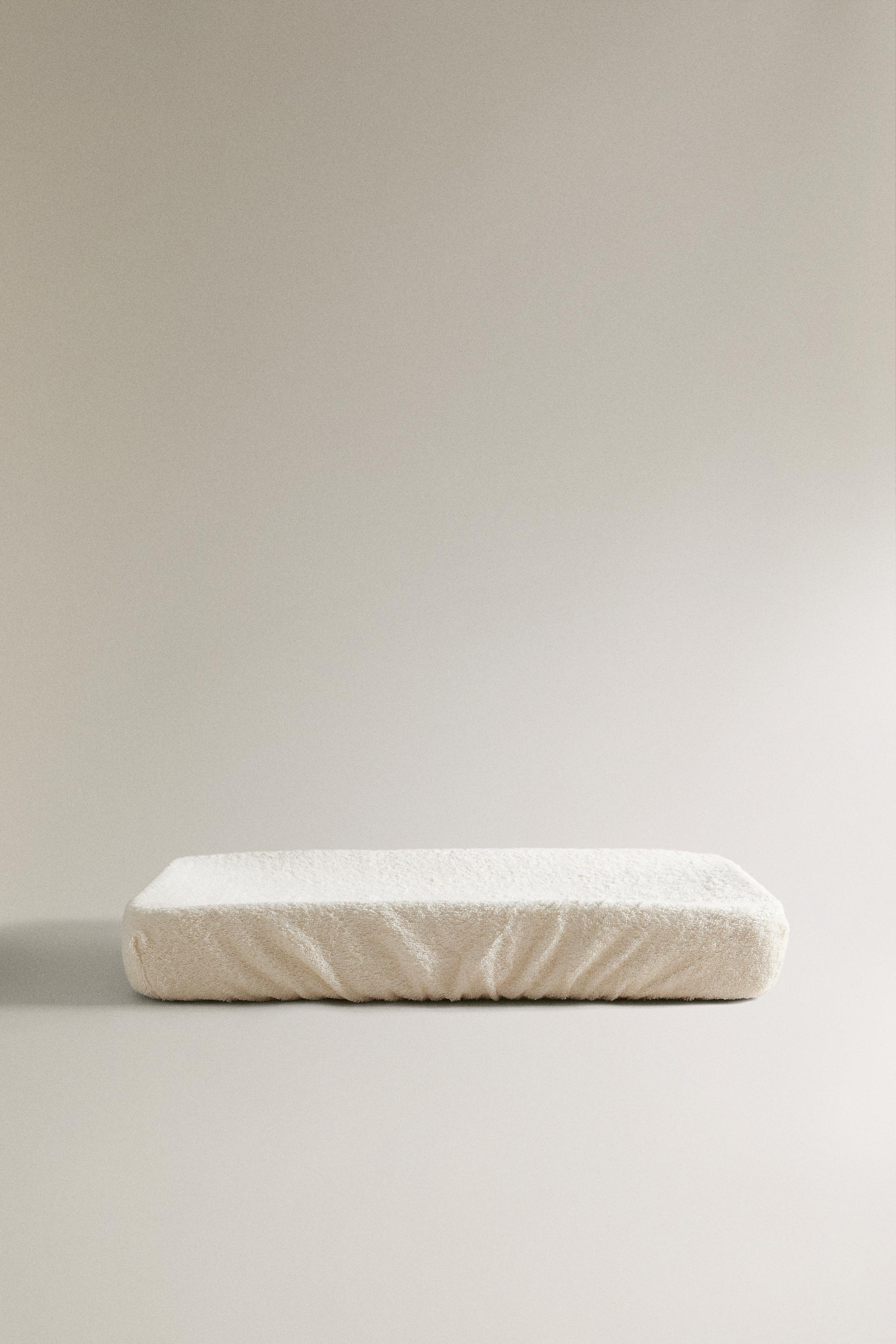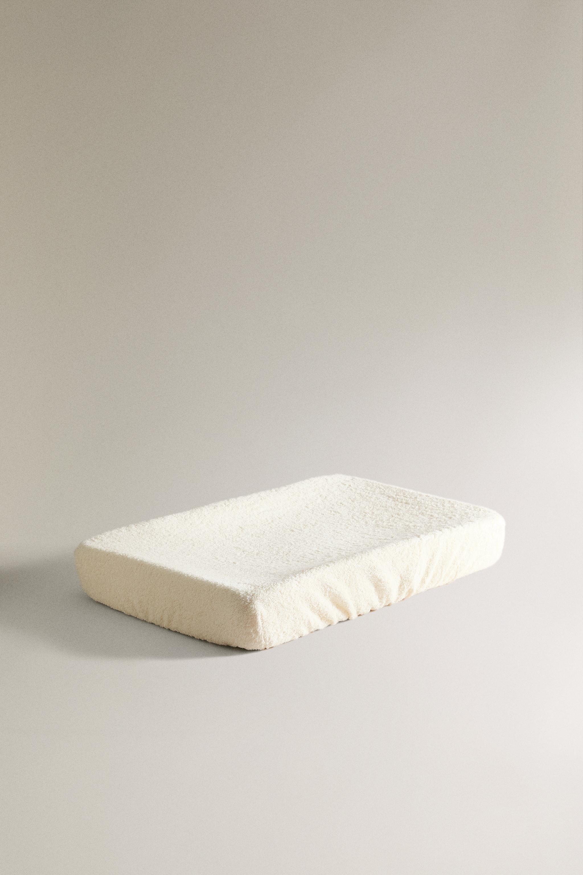 کفپوش تعویض نوزاد با طراحی خطی و بافت حولهای از پارچه پنبهای ساخته شده است. این محصول دارای طراحی قابل تنظیم در گوشهها میباشد.