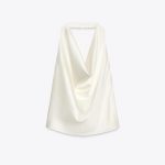 - Hafif halter yaka ve ince askılı, açık sırtlı üst. Parlak puantiye kumaş detaylı.