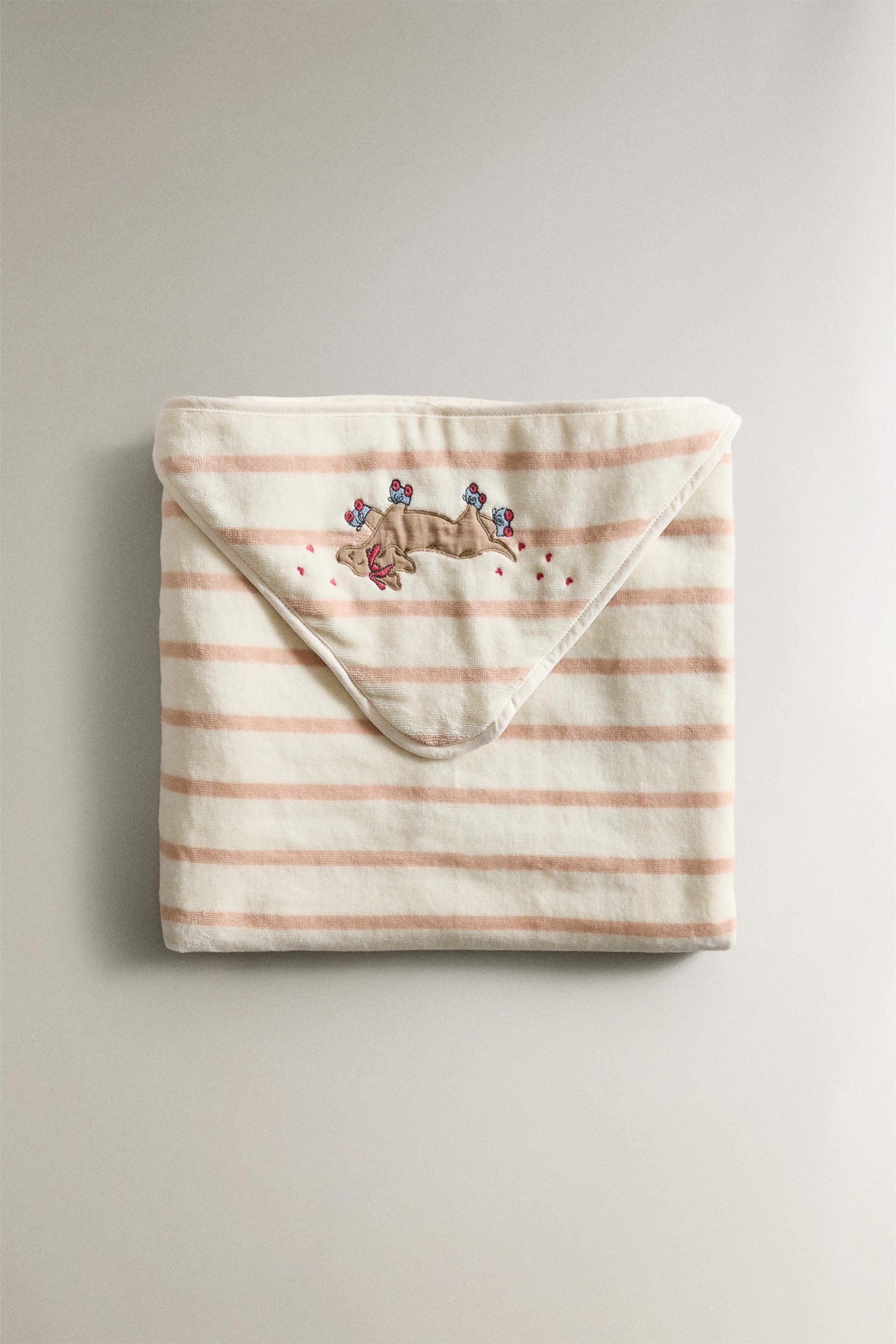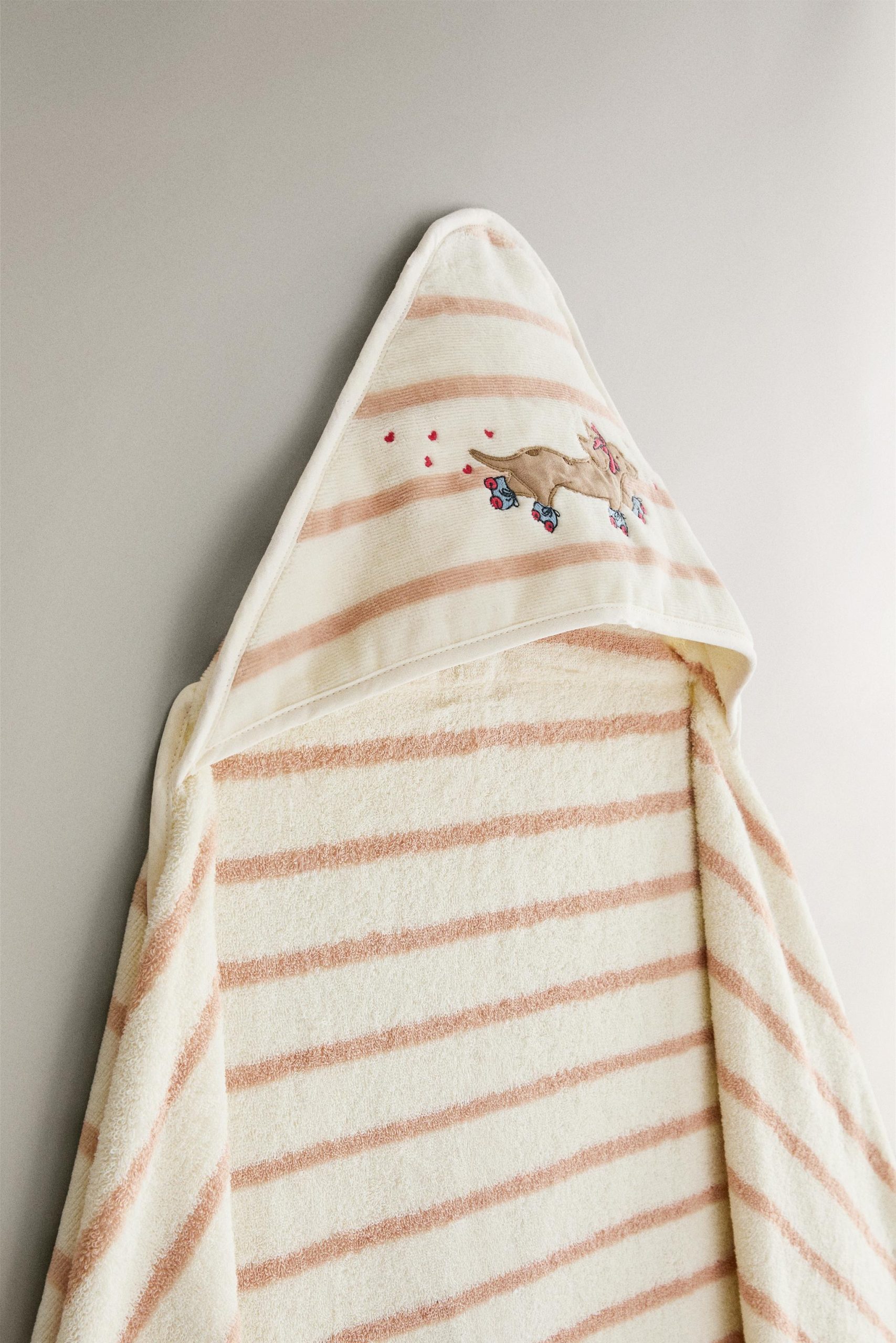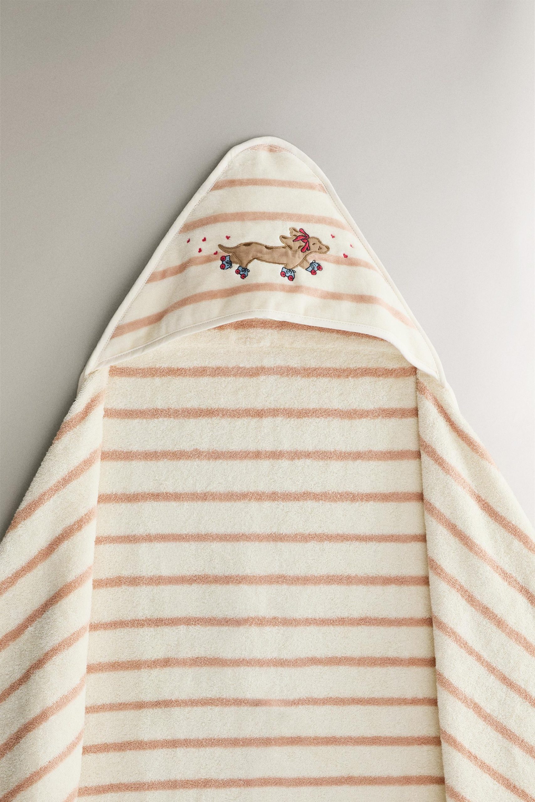 حوله حمام کودک کلاه‌دار گلدوزی شده از برند زارا