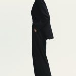 شلوار بلند با کمر پلدار و بلندی بالا. دارای دوخت در جلو. جیبهای کناری و جیب زیپدار در پشت. بسته شدن از جلو با زیپ و دکمه.