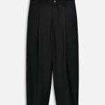 شلوار متوسط بلندی از پارچه پشمی نازک. دارای کمربند. دارای جیبهای کناری و جیب پشتی با لبه. قسمت جلو دارای چین است. فیت مستقیم. دارای زیپ و دکمه در قسمت جلو.