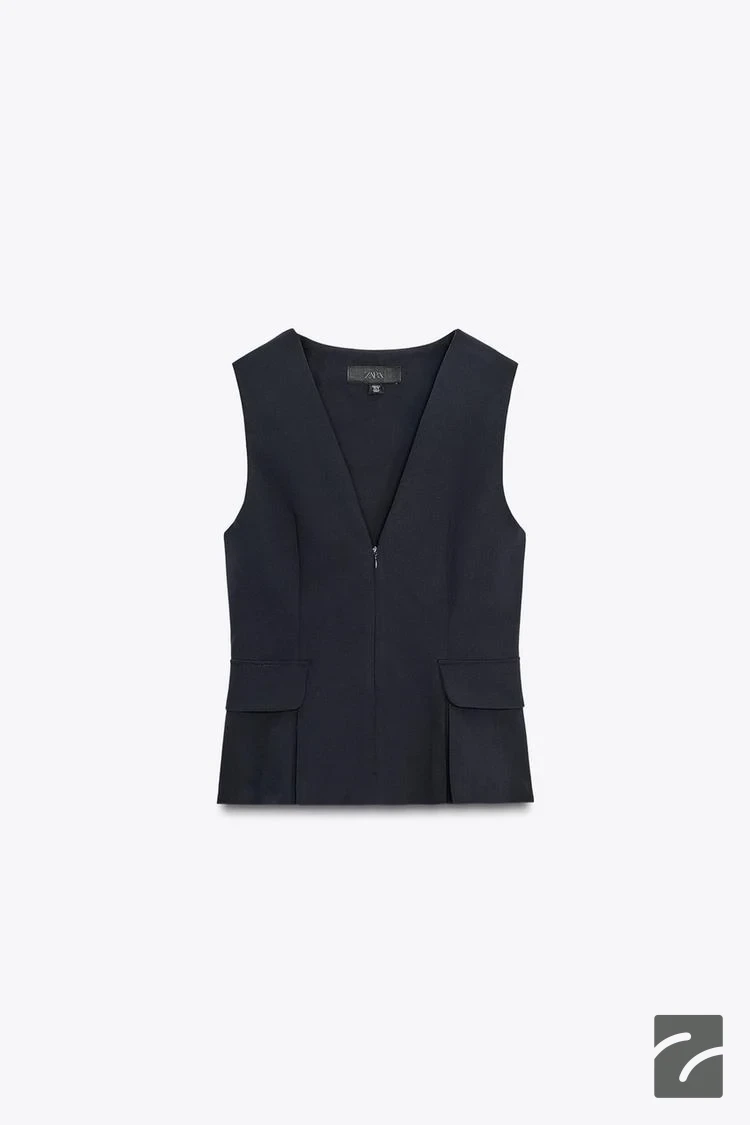 تاپ بدون آستین V یقه با طراحی پپلوم از برند زارا (زنانه)