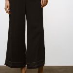 شلوار بلند و کمر بلند با جیبهای دروغی و لبههای دوزی شده. پاچهها عریض و کوتاه هستند. لبه پایین شلوار با چین و دوختهای رنگ متضاد تزئین شده و در دوخت کناری زیپ مخفی وجود دارد.