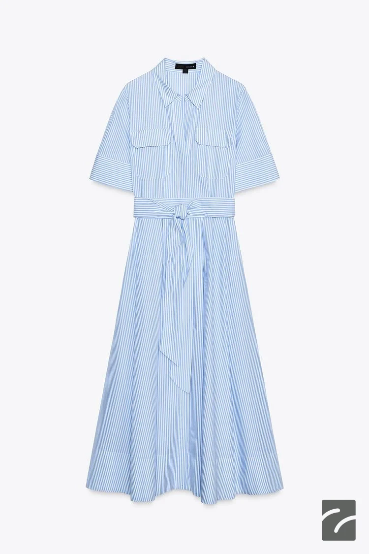 پیراهن زنانه با یقه و جیب سینه از برند زارا (زنانه) - S, راه راه (02640596)