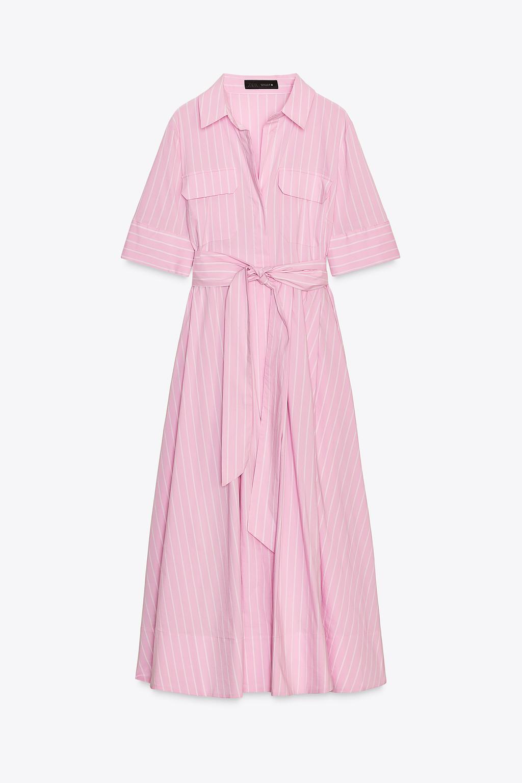 پیراهن زنانه با یقه و جیب سینه از برند زارا (زنانه) - XS, صورتی (02640596)
