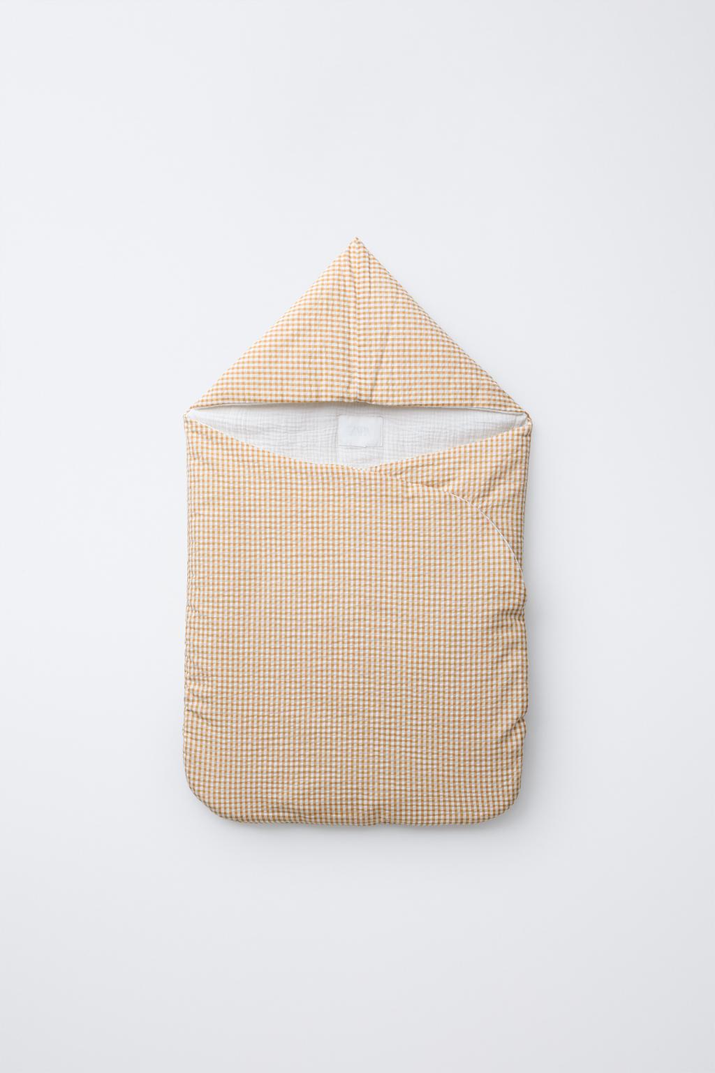 این طرف دارای پوشش مخفی با دکمه چسبی است و مخصوص حمل نوزاد با کلاهدار طراحی شده است. طرح آن چهارخانه است. این محصول یک کیسه خواب نوزاد نیست و تنها برای استفاده در فضای باز تحت نظارت بزرگسالان مناسب است.