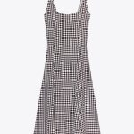 پیراهن میدی با یقه گرد و آستینهای بدون آستین.