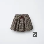 دامن الاستیک با کمر کشی و جلو فیلانک، دارای طراحی نرم و لطیف است. این دامن دارای جزئیات چیندار و الگوی چهارخانه میباشد.