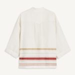 پیراهنی که از ۱۰۰٪ الیاف کتان تهیه شده است. دارای یقه گرد و آستینهای بلند با مچ. دارای جیب یقهای در قسمت سینه. طراحی ساده با برش مستقیم و چاک در کنارهها. بسته شدن از جلو با دکمه.