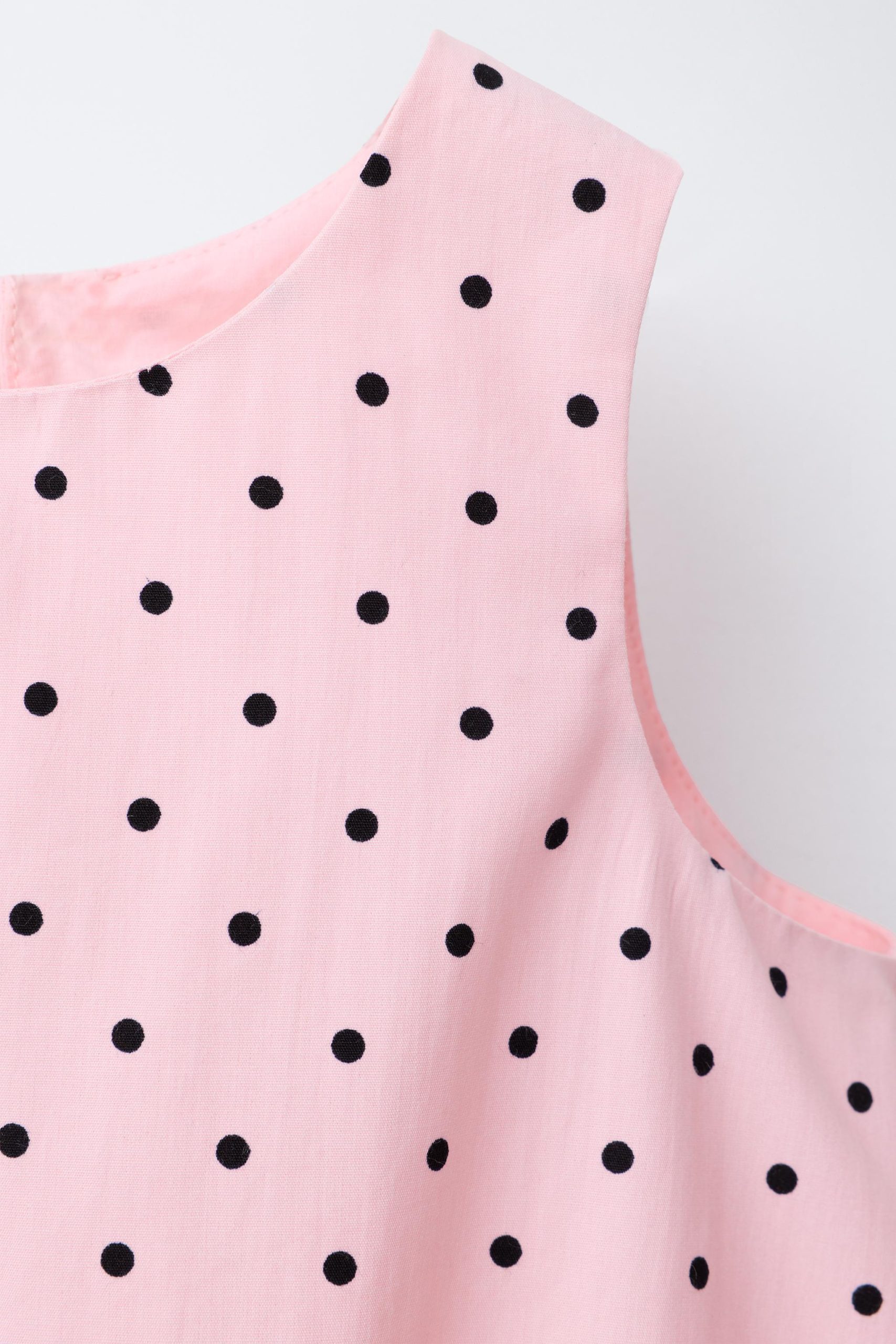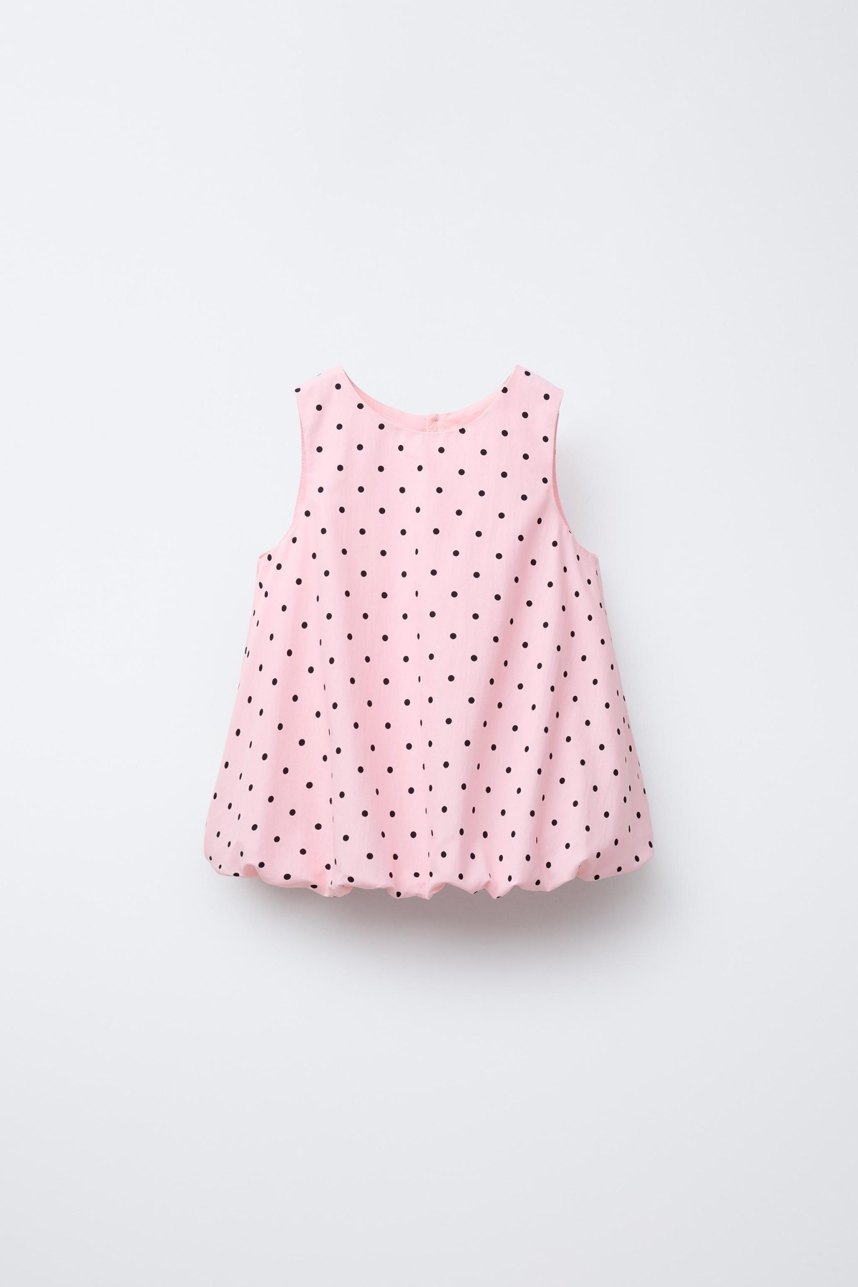 تاپ بدون آستین با یقه‌ی بیزیکلت. پشت آن دکمه‌دار و دارای چاک است. لبه‌ی دامن به شکل بادکنکی طراحی شده است.