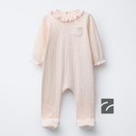 - Bisiklet yaka, fırfır detaylı ve kıvrık manşetli uzun kollu pijama tulumu. Ayarlanabilir paça boyu sayesinde çoraplı pijama tulumuna dönüşebilir. Sırt ve bel kısmında çıtçıt düğmeli. Göğüs kısmında yama cep. Puantiye desenli. %100 pamuklu kumaş.