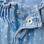 • Elastik belli, önü düğmeli paperbag pantolon. Ön cepli, arkası kalp şeklinde yama cepli. Puantiye desenli.