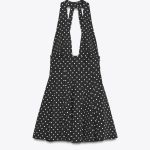 پیراهن کوتاه با یقه هالتر و یقه V. دارای جزئیات بند در قسمت پشت. دارای آستر داخلی ترکیبی. بسته شدن با زیپ مخفی در درز کناری.