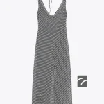 - Dökümlü yakalı, kolsuz midi elbise. Sırtı açık ve bağcıklı ayarlanabilir. İç astarı mevcut. Etek ucu kloş kesimli.