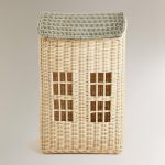 - Çocuklar için ev şeklinde oyuncak düzenlemek için rattan sepet.